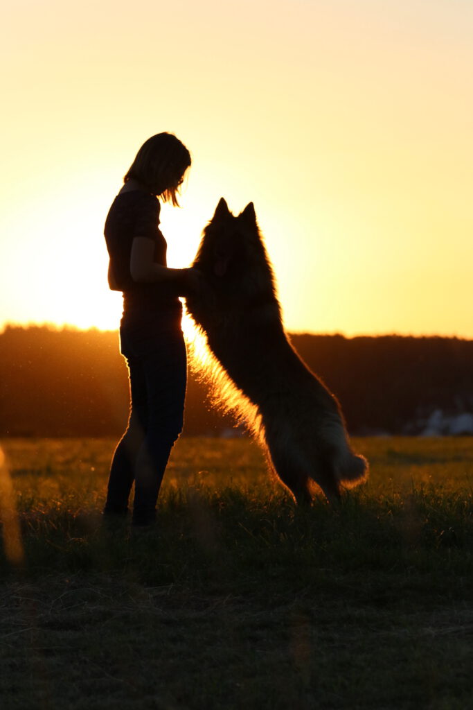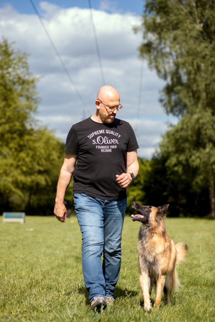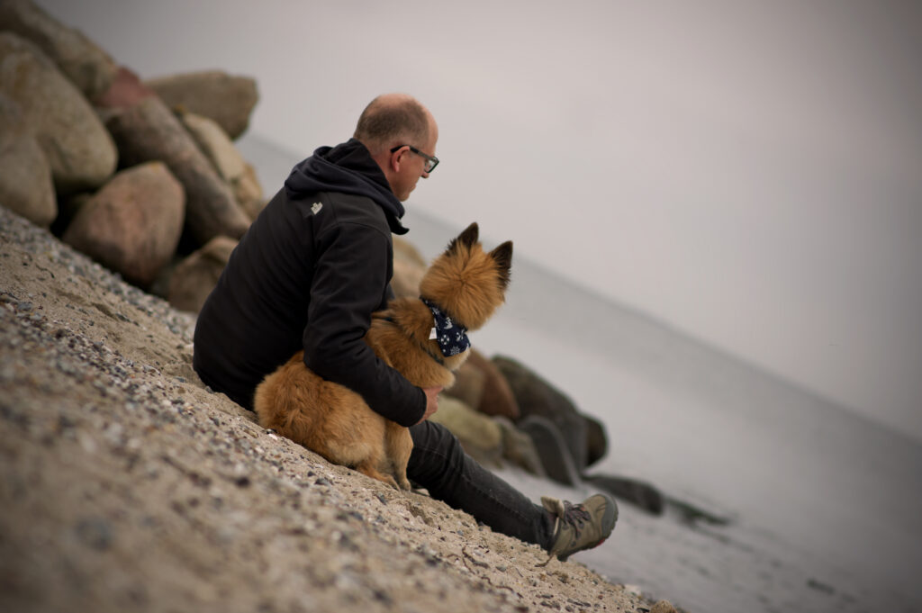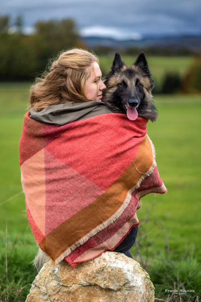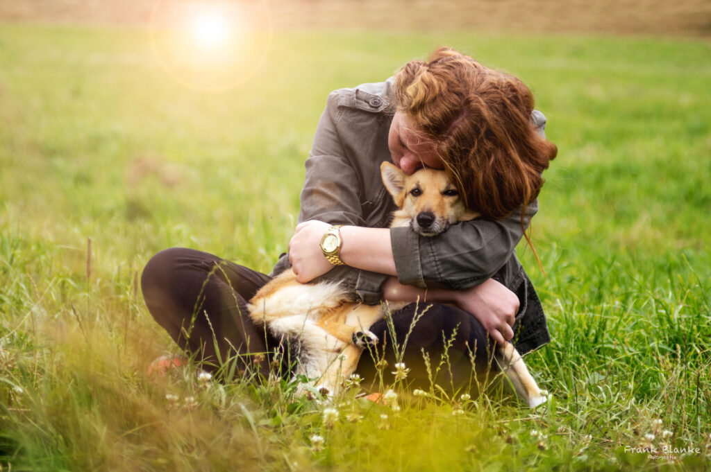 Der Mensch und sein Hund: gestalterisch kann man hier Bilder machen, die sozusagen close-up sind, also ganz nah an beide herangehen, und so eine gewisse intime Stimmung schaffen. Geht man ein Stück weit weg, so erzeugt man eine Stimmung, die den Betrachter als Beobachter aus der Entfernung erscheinen lässt.