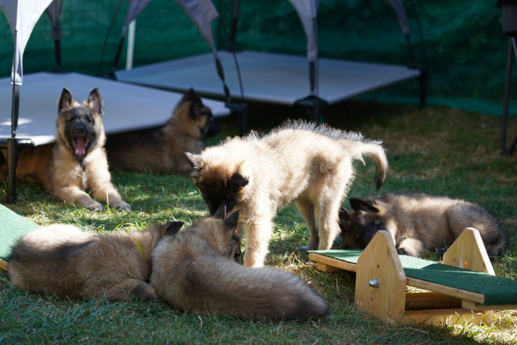 Was können wir als Züchter noch tun? Wir machen gegen Ende der Zeit, die die jungen Hunde bei uns verbringen, kleinere Ausflüge. So geht ein Ausflug zum Beispiel in den Wald. Ein anderer Ausflug geht bei uns in das Outlet-Center, so dass die Kleinen auch so etwas bereits mal gesehen, gehört und gerochen haben.